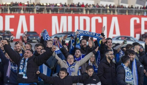 El pasado curso asistieron 23.050 espectadores y ya se puede confirmar que serán más este domingo a partir de las seis de la tarde. La afición del Hércules, de hecho, ya ha adquirido cerca de 2.700 localidades, todas ubicadas en la esquina izquierda del Fondo Norte de la Nueva Condomina. A un precio de 15 euros cada entrada, se espera que la cifra siga incrementando con el paso de las horas hasta superar, como mínimo, los 3.000 aficionados visitantes. Eso sí, parece complicado que vuelvan a acudir los cerca de 4.000 blanquiazules que presenciaron este mismo partido la temporada pasada.